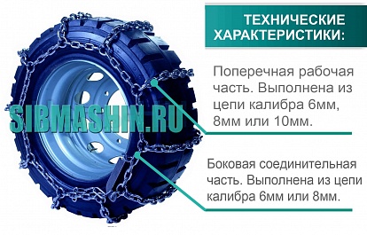 Цепи противоскольжения для погрузчиков и спецтехники тип «лесенка» изготавливаются из круглозвенных цепей калибром 6/6мм, 8/6мм, 8/8мм и 10/8мм (где первая цифра — калибр поперечной рабочей части цепи, вторая цифра — калибр боковой соединительной части цепи).