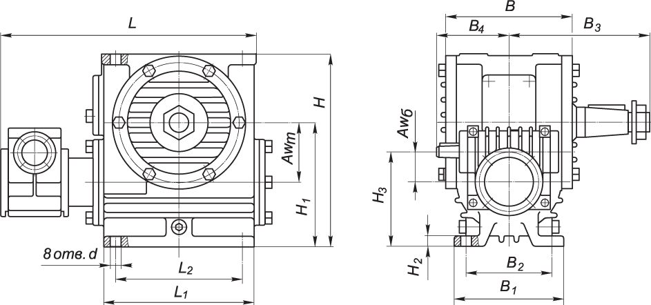 Габаритные и присоединительные размеры редукторов Ч2-100 – Ч2-160