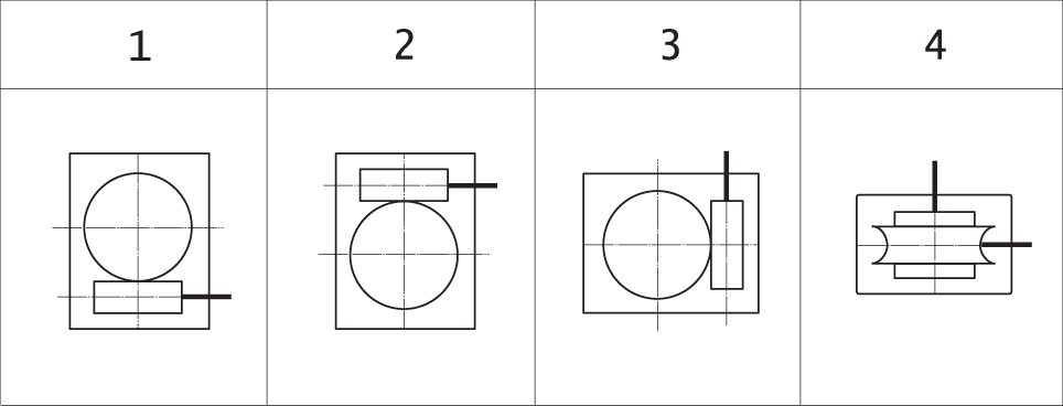 Варианты сборки редукторов Ч2 (вид сверху, червяк под колесом)