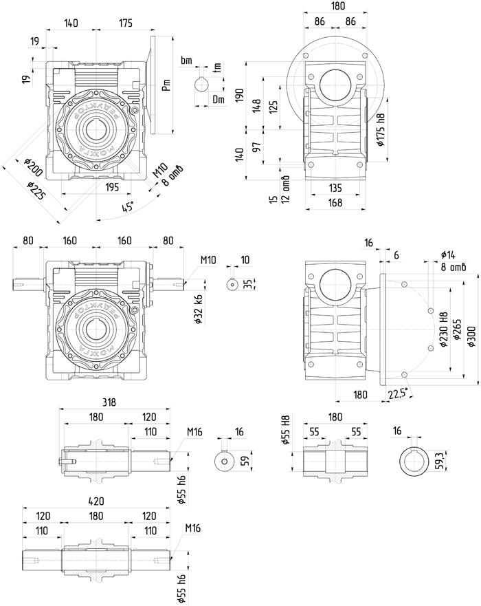 Габаритные и присоединительные размеры редуктора 6Ч-125