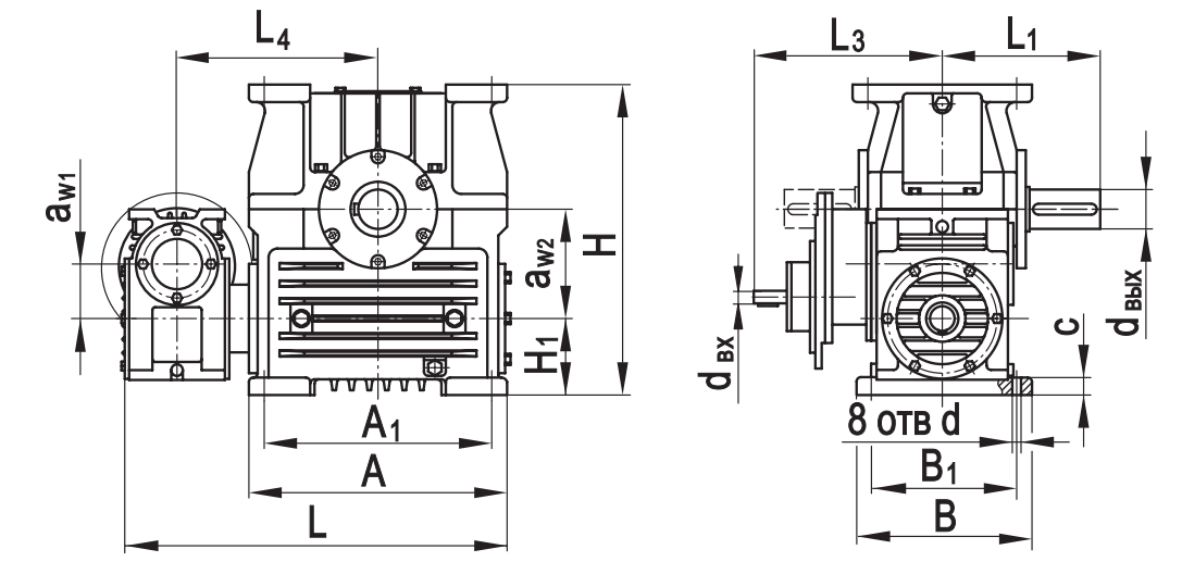 Типоразмер аW1 аW2 А А1 В В1 L* L1* L2max L3* L4 Н Н1 сd d вх dвых