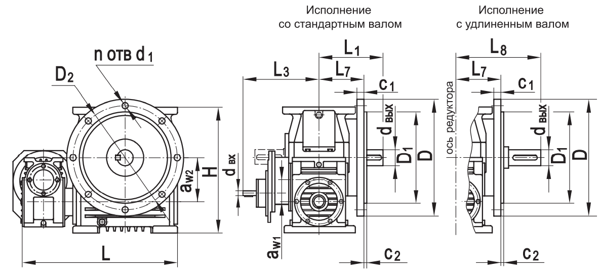 Габаритные размеры редуктора на фланце