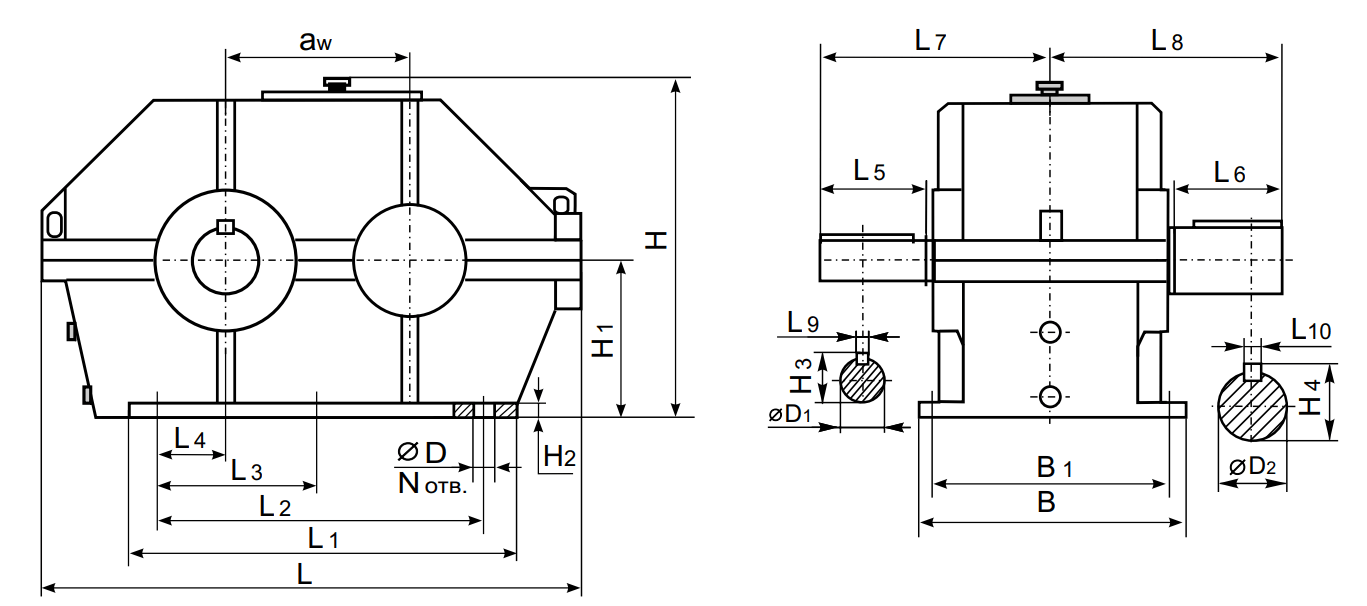 Размеры конца тихоходного вала в виде зубчатой полумуфты