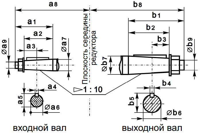 Размеры конца тихоходного вала для присоединения приборов и автоматики